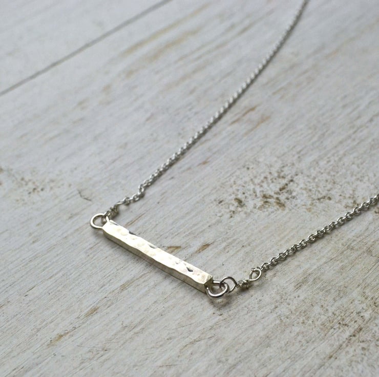 Part of my simplicty collection of mimimal clean designs. This bar necklace is two necklaces in one as it can be worn with the textured side to the front or the smooth side.