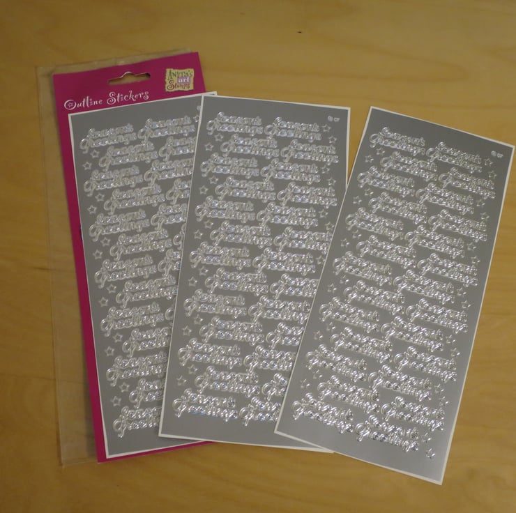 I've got some left-over outline stickers to re-home: three full sheets of silver 'Season's Greetings' stickers with stars. Hoping someone else can make use of them.