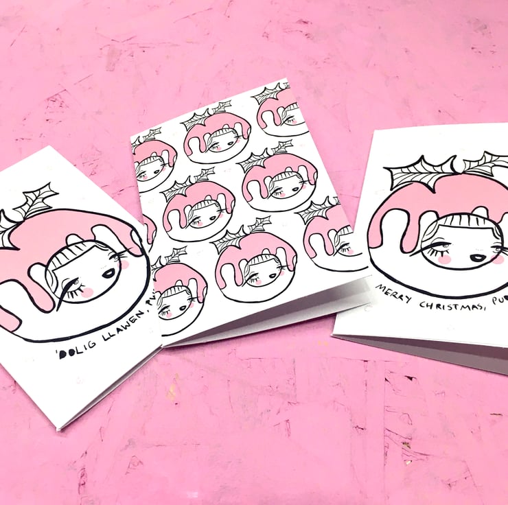 Pudding Pattern card x 3 / Single pudding cards Welsh/English message x2 (please choose which language in the options).