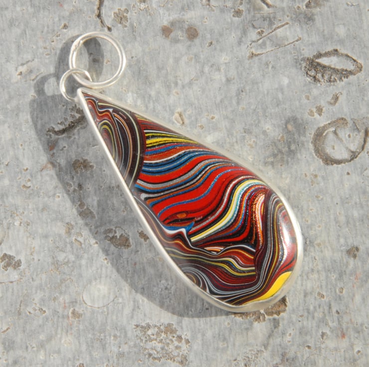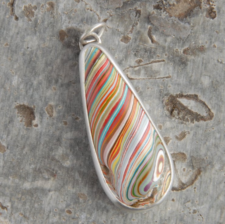 Small Dodge fordite pendant (photo 3) measures 34 by 13mm, comes with 18 in silver chain