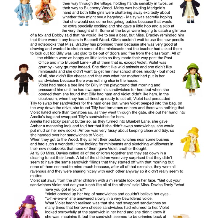 There are other children in Maisy’s class at school - Violet, Billy with his pet rabbit, Amber, Tilly, Rosie and her kittens, Amelia, Ruby, Marigold, Bobby with Max the dog, and the twins Oliver and Olivia, who have a puppy called Oscar. The dolls are all 26cm tall and baby Daisy is 16cm. Maisy and Mo love nothing more than having adventures with their friends. You can read about their adventures on my Facebook and Instagram pages - Maisy Muffin Rag Dolls and on my Mulberry Green Pinterest boards.