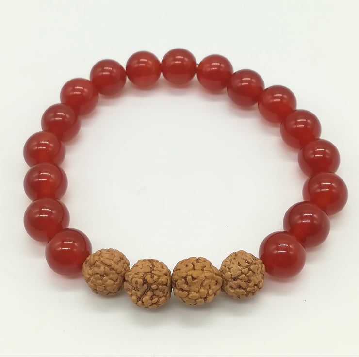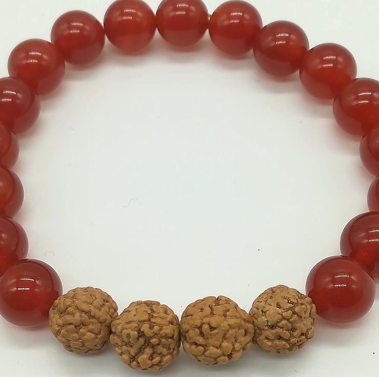 It's made with genuine gemstones - 8mm natural beautiful orange-red carnelian beads,and 8mm natural, Rudraksha beads.