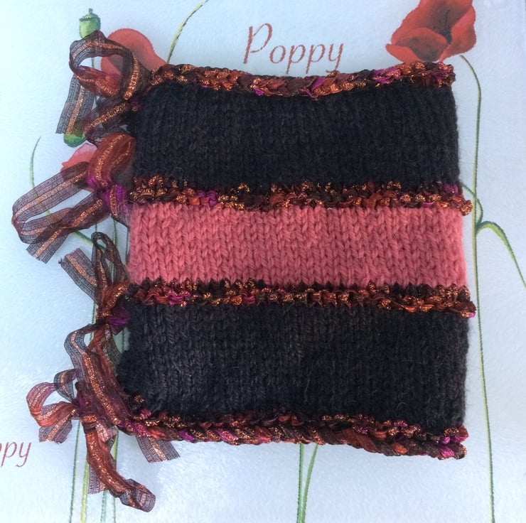 The cosy is tied together with four beautiful glittery ribbons - simple instructions are included.