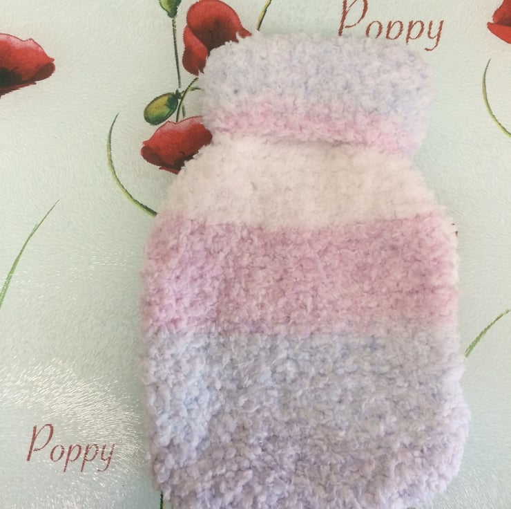 Winter Baby Pink Lilac Hand Knitted Hot Water Bottle Cover by Poppy Kay Designs