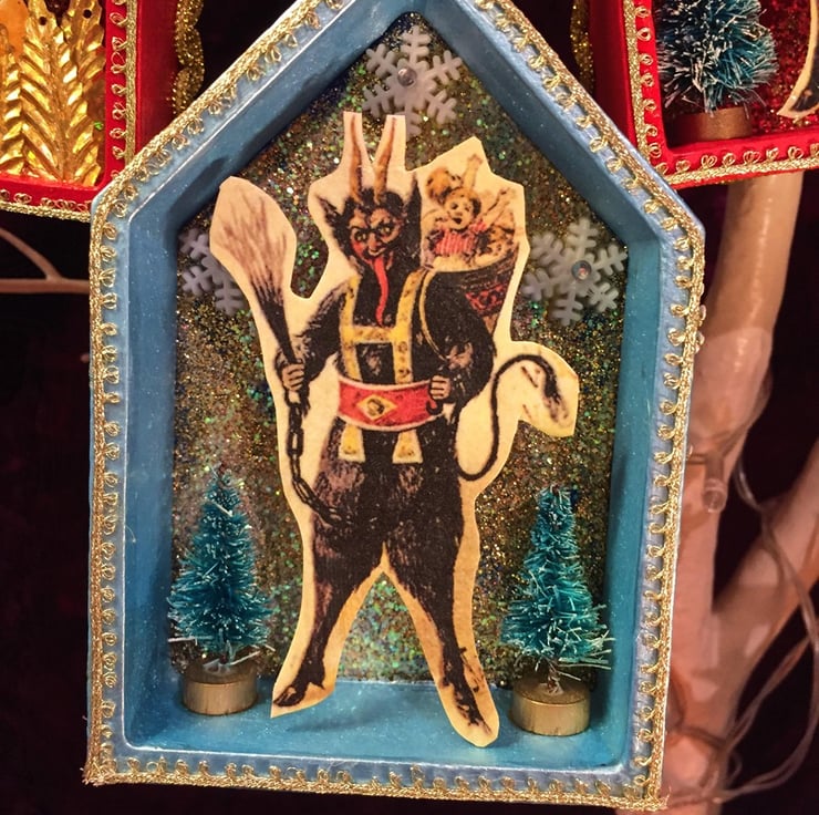 The Christmas Devil inspired these festive shrine , which is a German folklore Krampus He was created as a counterpart to kindly St. Nicholas, who rewarded children with sweets. Krampus, in contrast, would swat "wicked" children and take them away to his lair if the children misbehaved