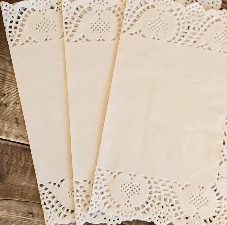 3 x large rectangle paper doilies .. approx 14” x 9.75” THESE WILL BE FOLDED IN HALF LIKE BOOK PAGES