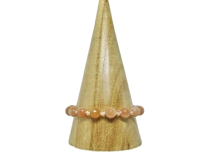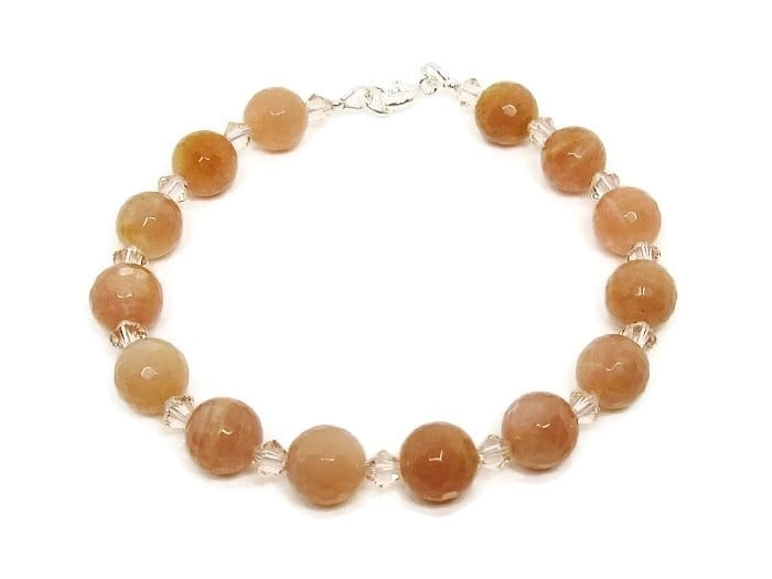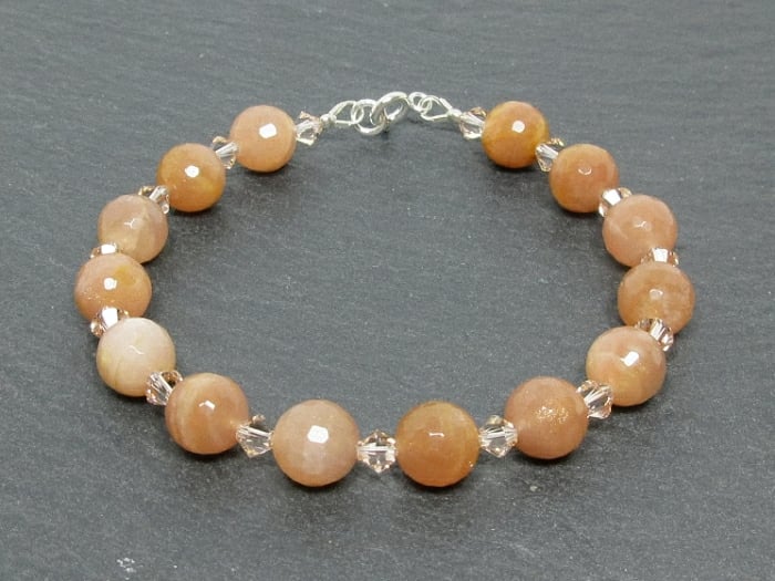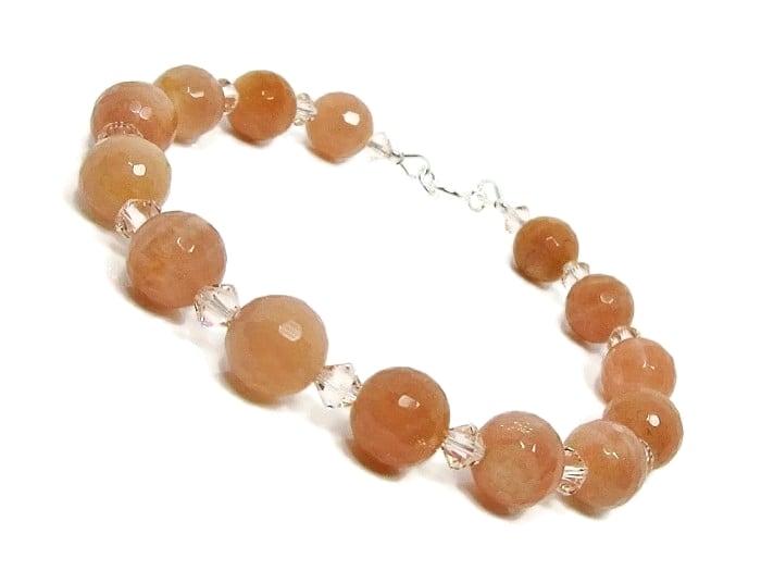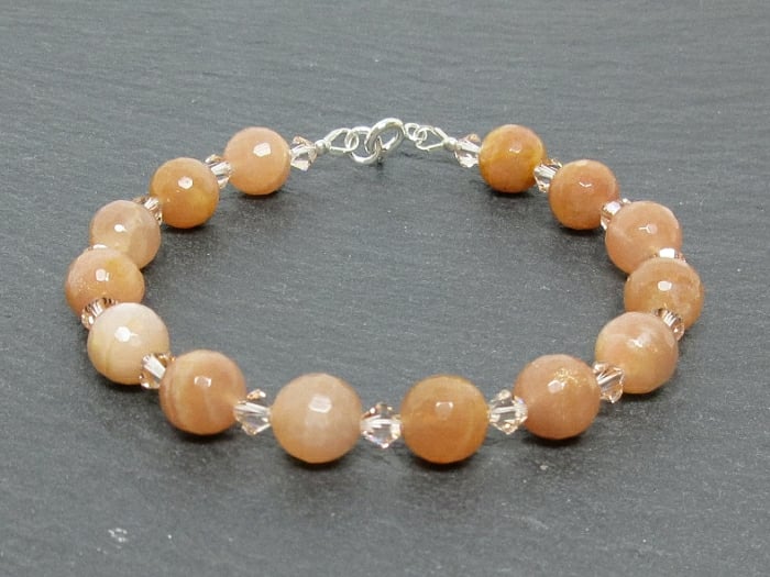 An elegant & feminine bracelet in soft peach tones with these 8mm faceted Sunstone beads.