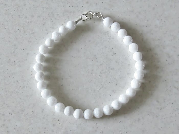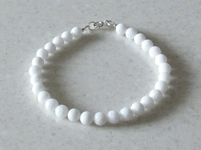 For this slim stacking bracelet I chose bright white Agate 6mm round beads.