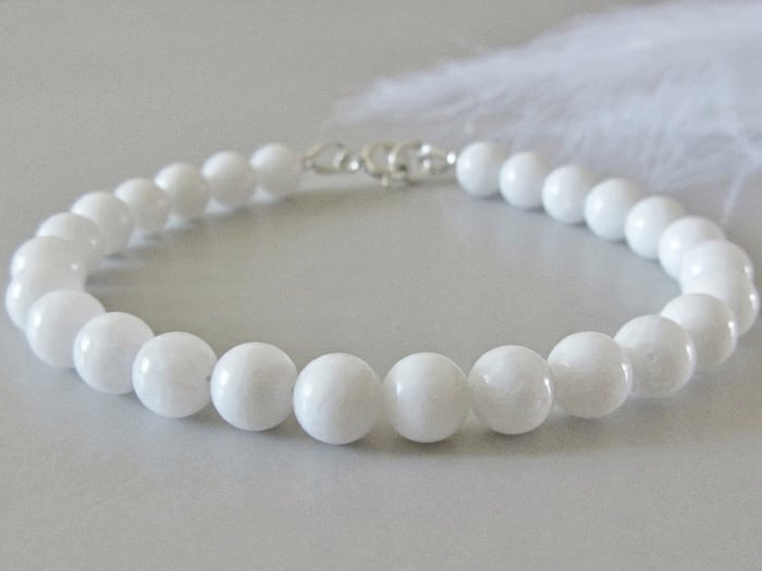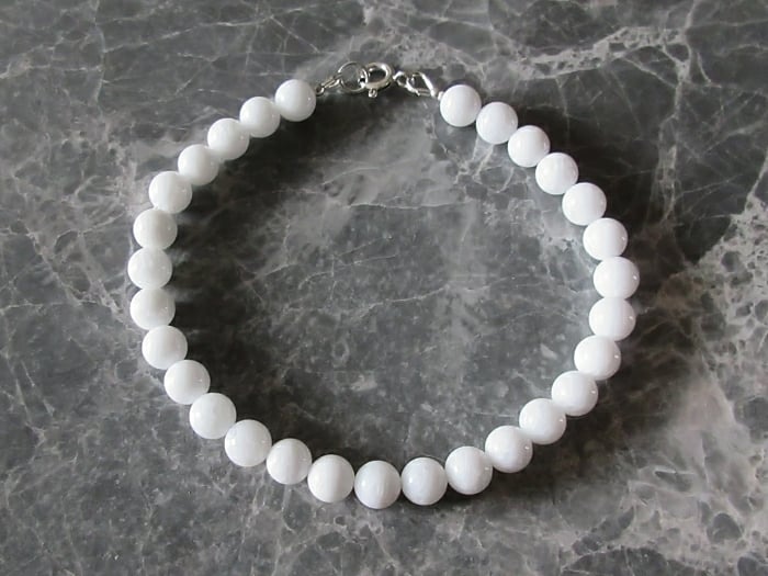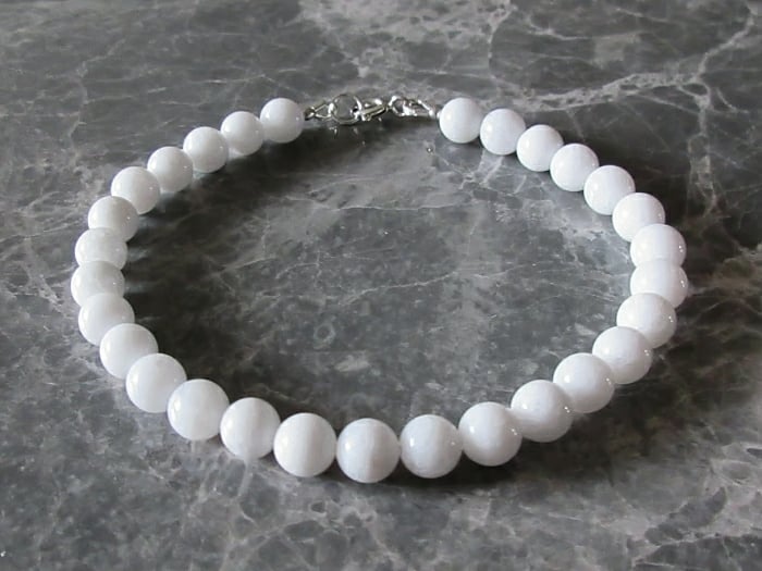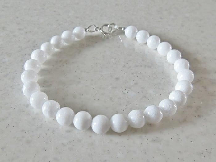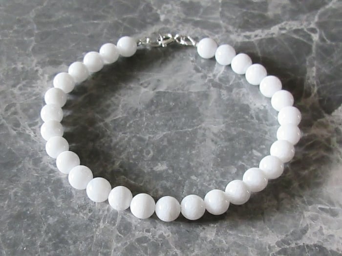For this slim stacking bracelet I chose bright white Agate 6mm round beads.