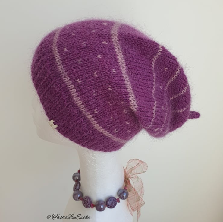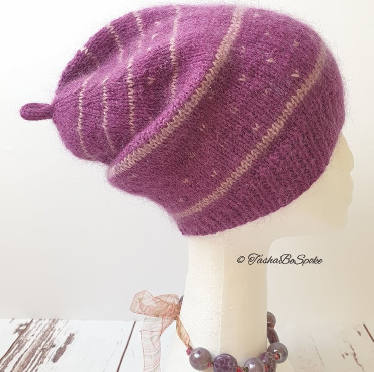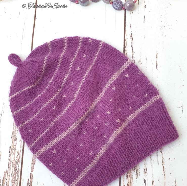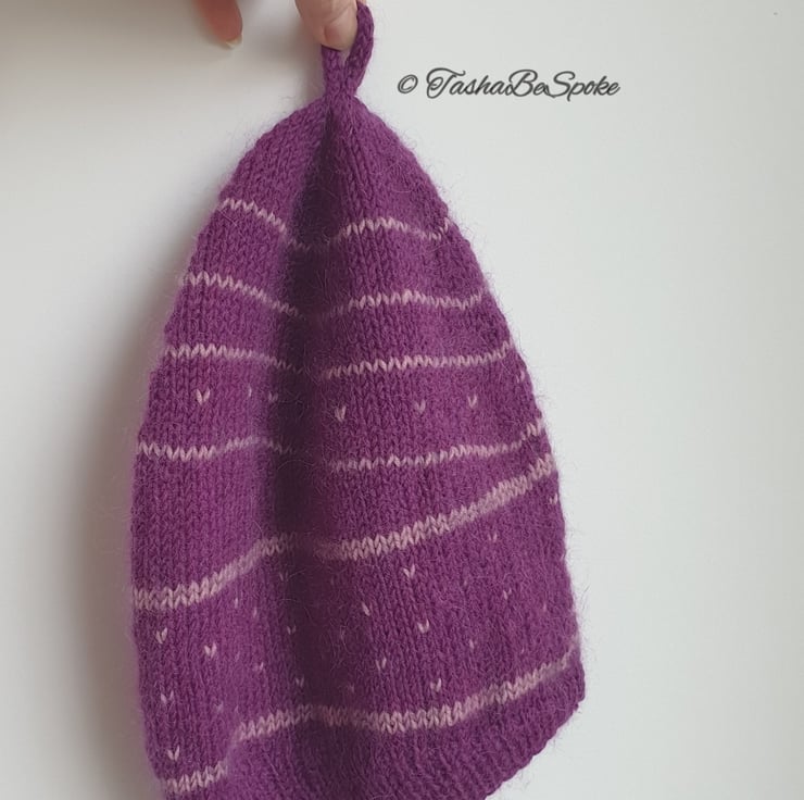 A little loop at the top is worked both as a decorative finish and as a practical way to hang the hat when not in use :)
