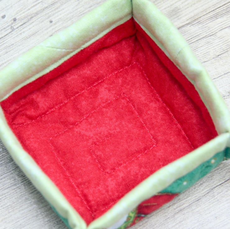 This small Christmas themed quilted box can be used to store all kinds of festive treats!