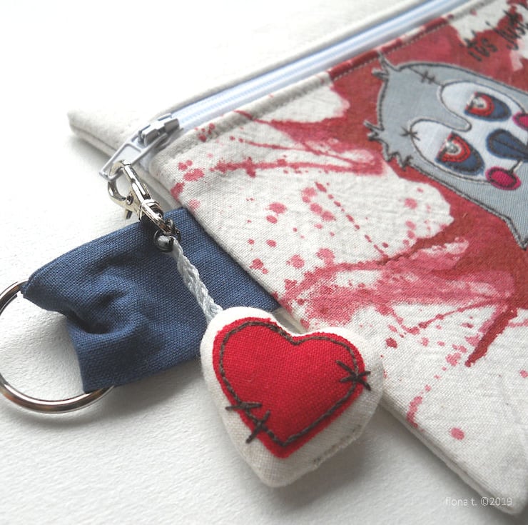 the co-ordinating hanging loop is extra securely fastened. the attached zombie heart bag charm is not.