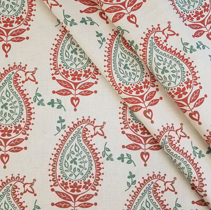 This fabric is a beautiful blend of 94% cotton and 6% linen. It is digitally printed in the U.K with waterbased pigment inks. The fabric is unbleached, medium/heavyweight cotton linen blend and suitable for a range of furnishings like curtains, cushions, blinds, lampshades and light upholstery.