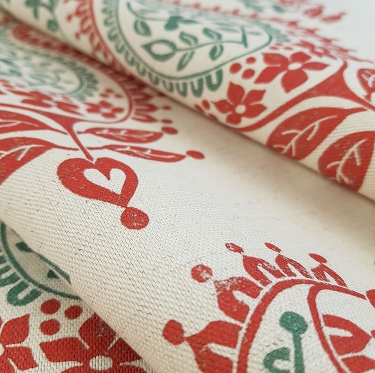 I love this fabric. It is a re-design of my original lino print from a while ago. I particularly love the way the texture of the original block print has re-produced so well.