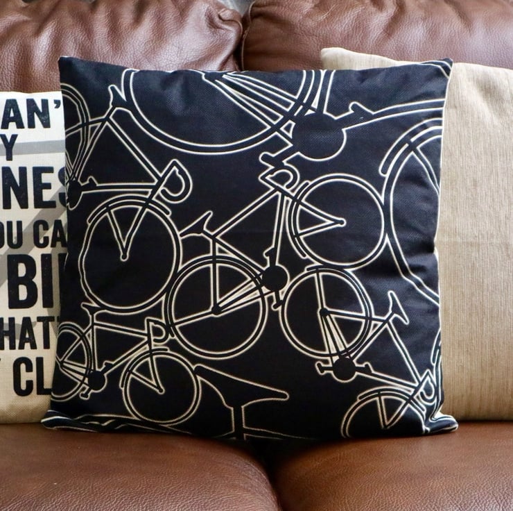 Cushion cover is black on front and neutral linen colours on the back. - the same colour as the bikes.
