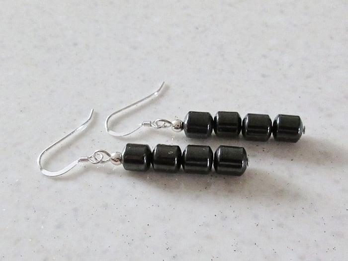 For these ladies handmade non magnetic Hematite earrings I kept it simple & used 6mm drum shaped beads. They could also be called tube beads.