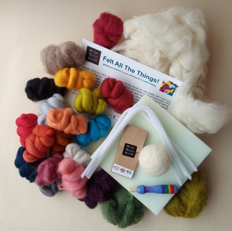 Super Duper starter pack containing oodles of woolly goodness for you to felt all the things! This needle felting starter pack contains everything you need set you on your way and then some.