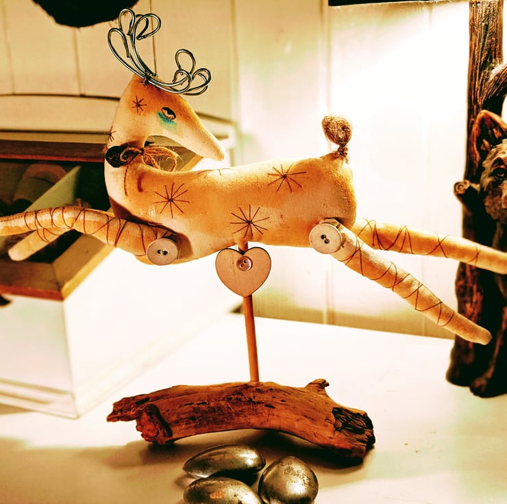 The faery stag leapt up wowards the moon, i love this animal so much i cant help but keep making them. I have made the 'faery stag' due to popular demand, it seems others love a stag as much as I do.
