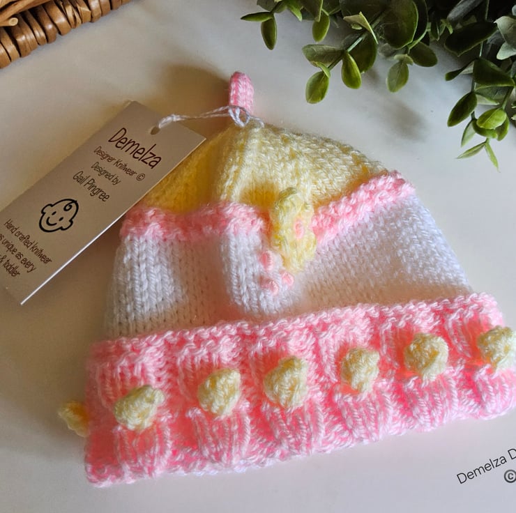 Designer Hand Knitted Baby Girl's Hat Newborn