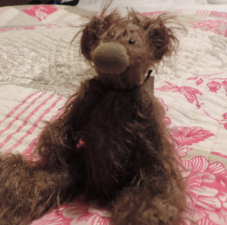 Sweet little brown mohair bear. Fully jointed with glass eyes.