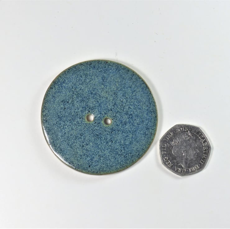 The top has been glazed in a wonderful mottled bluey green glaze and the underside remains unglazed.