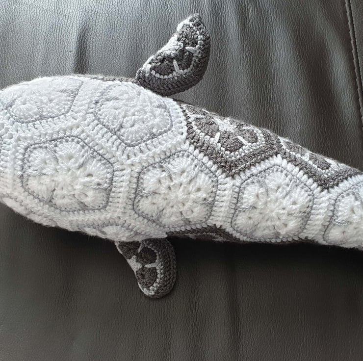 Fabulous crochet pattern by LineandLoops with adjustments by froeschi4 to make it a dolphin https://www.ravelry.com/patterns/library/purdy-the-african-flower-whale
