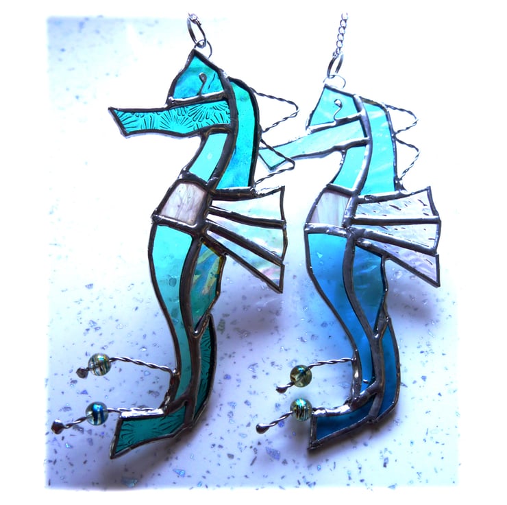 I designed ths as one of my very first suncatchers and then mislaid the pattern. It was only when I thought maybe I would like to make a seahorse a couple of years later that I remembered the first I had made in 2008.