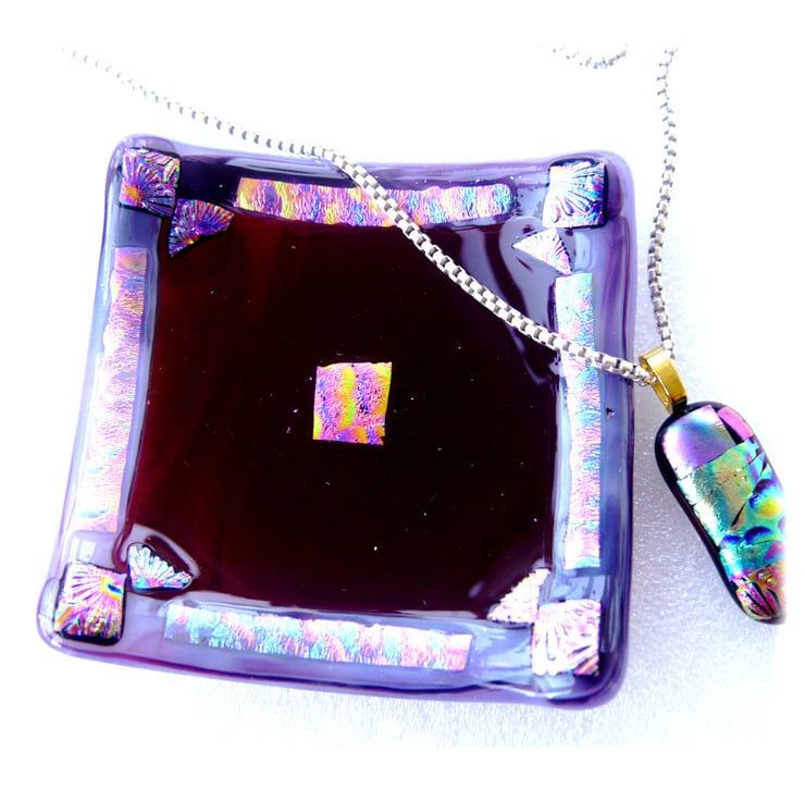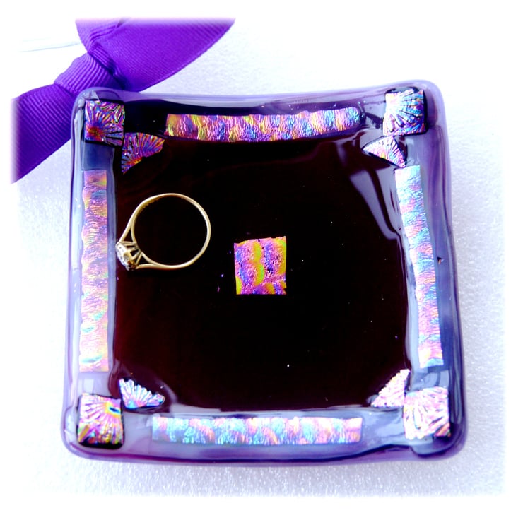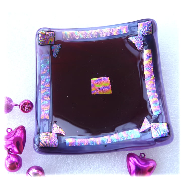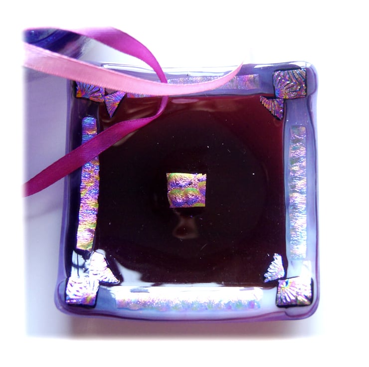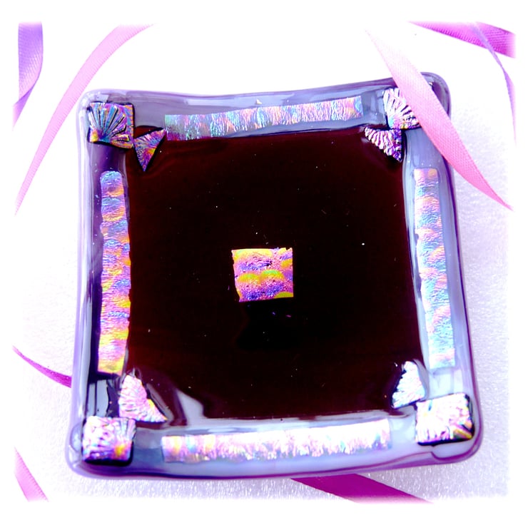 Then I've added a lavish decoration with my precious dichroic glass. Round the border and a little in the centre which gives it a really luxurious look. The dichroic decoration has hints of pink, purple and turquoise and is very slightly raised to give a nice tactile feel.