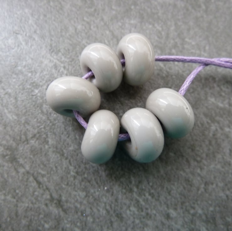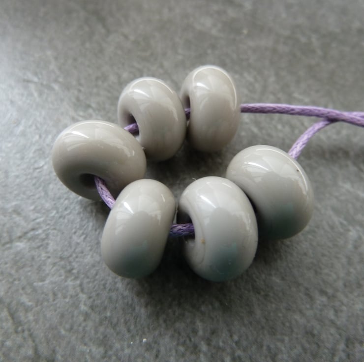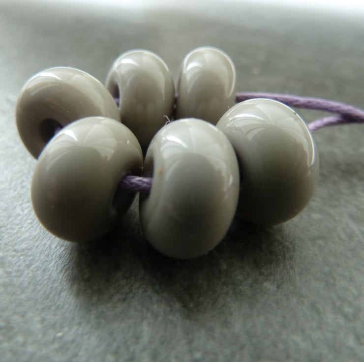 A set of 6 lampwork glass spacer beads made with grey glass.