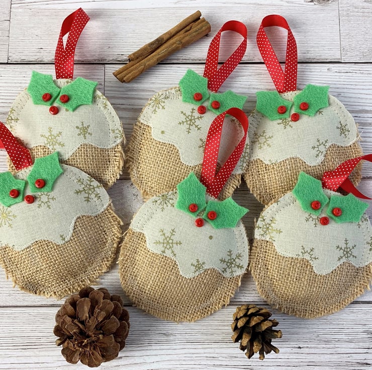 Listing is for ONE Christmas pudding decoration. Ornaments and additional hanging decorations for illustration purposes only. A new range of rustic Christmas decorations will be arriving in my shop soon.