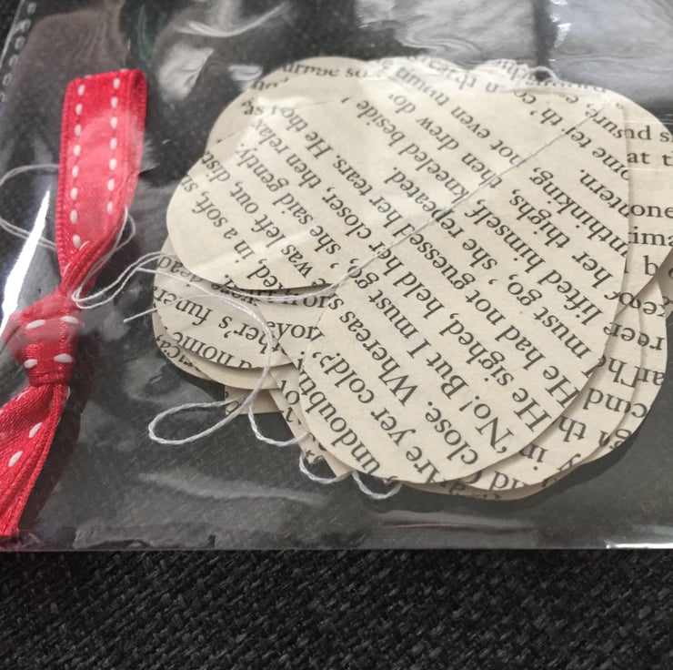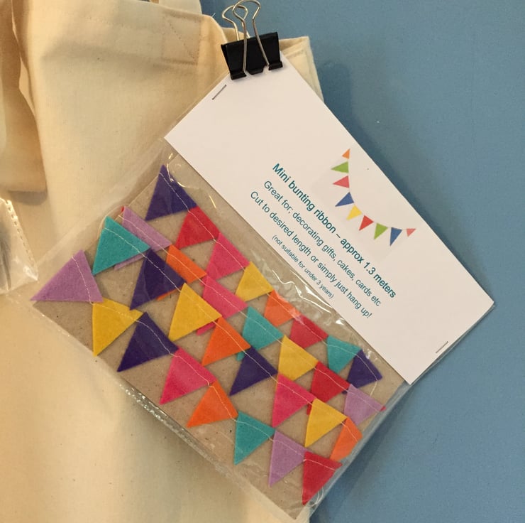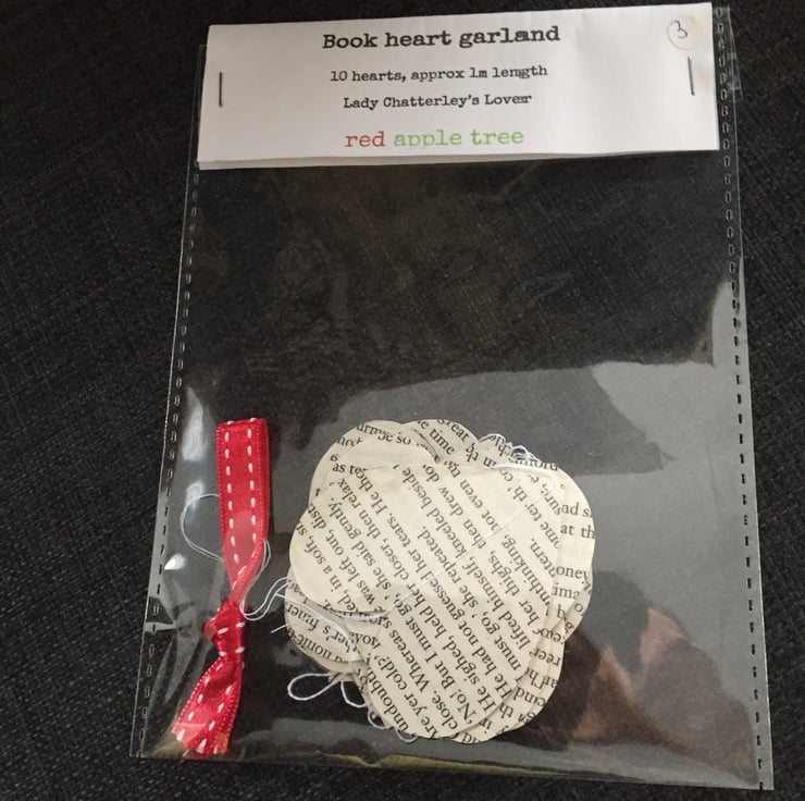 The bag will contain two items including either mini bunting - great for gift wrapping or as a decoration, paper book heart garland decoration or fabric Liberty heart clothing patches. (The embroidered S11 fabric will differ in print and colour on each bag),