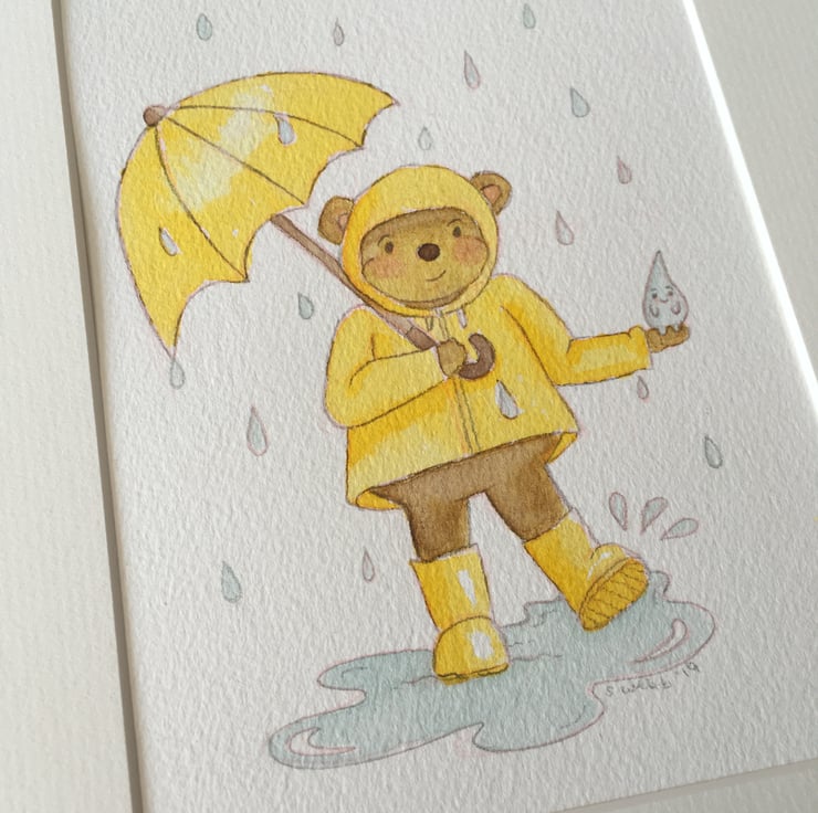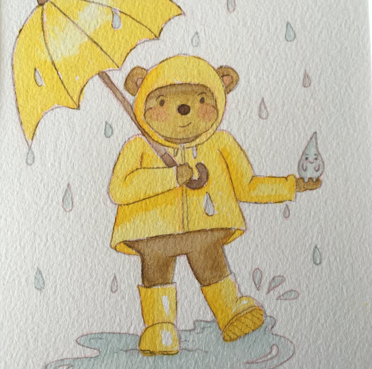 Don't let the rain get you down, this bear certainly doesn't, he makes friends with the raindrops.