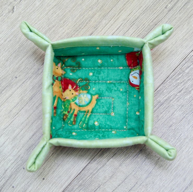 This small Christmas themed quilted box can be used to store all kinds of festive treats!