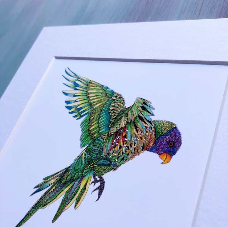 An ice white mounted print of my original artwork, 'Emerald'.