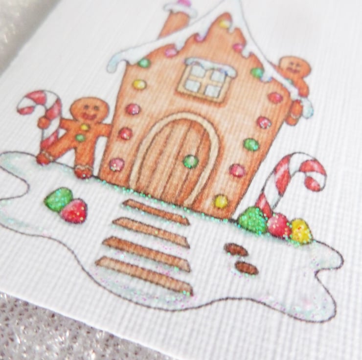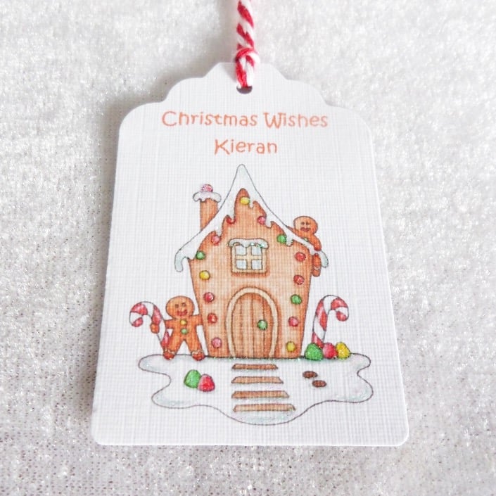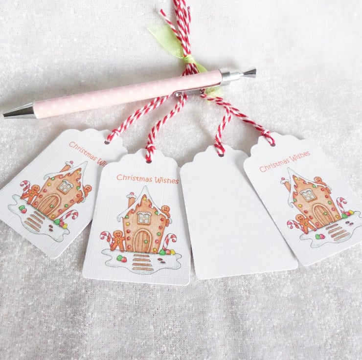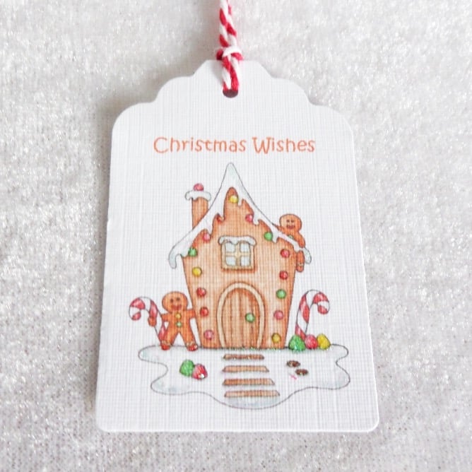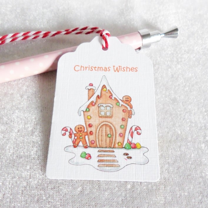 Each tag has been printed out onto good quality white linen embossed card and has a Christmassy candy cane red and white coloured twine attached. I have also added a little glitter detail to the snow icing and sweets. Each tag is blank on the reverse for you to write your own message.
