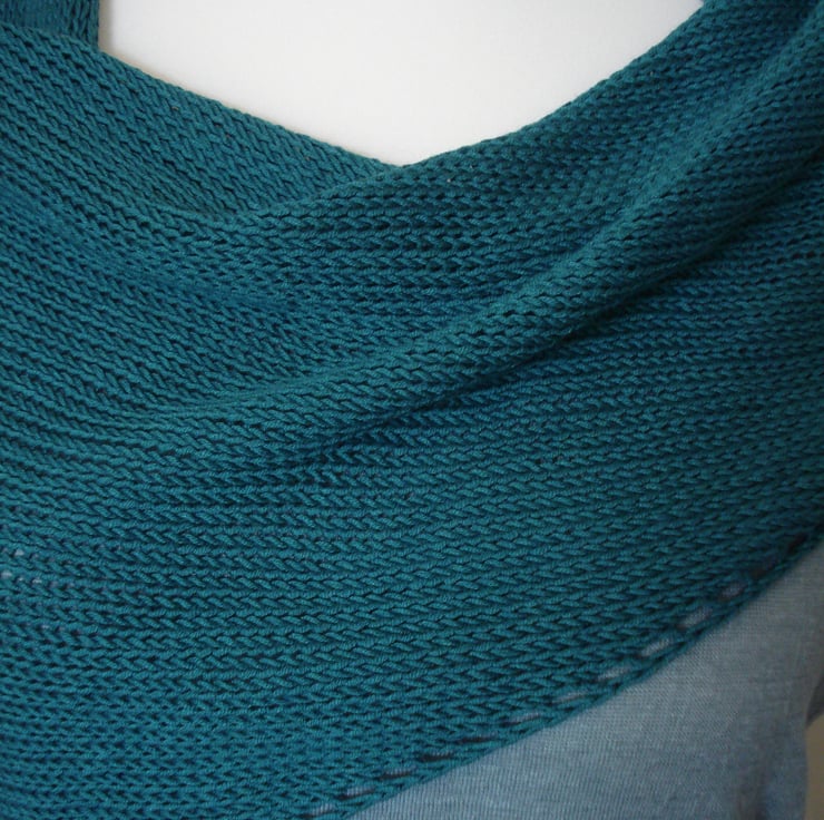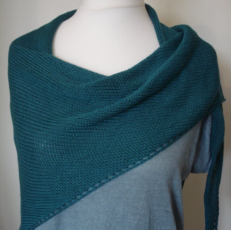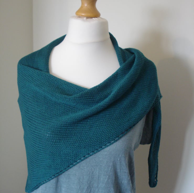 This triangular knitted bamboo wrap is beautifully soft and will make a much loved addition to your wardrobe or a special gift. It has been lovingly hand made on a domestic hand operated knitting machine, and features pretty eyelets along two sides.