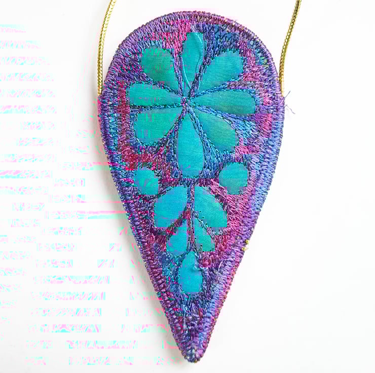 Made from layers of fabric including silk and cotton using the free machine embroidery style of sewing