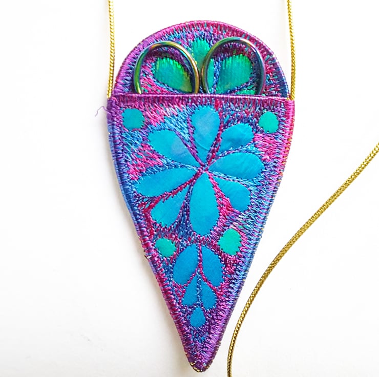 This is a handmade machine stitched fabric scissor holder necklace which includes a lovely pair of milward scissors.