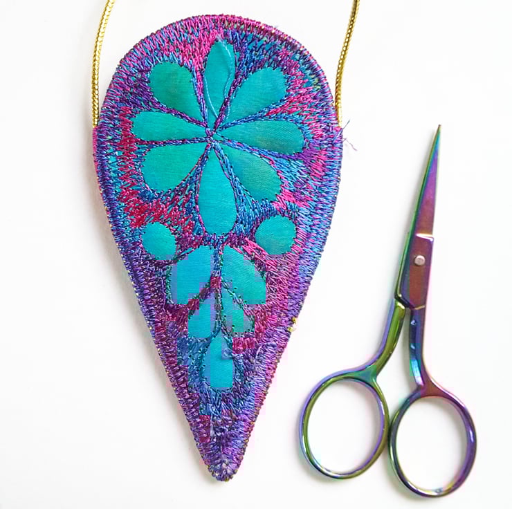 They come with s beautiful pair of Madeira embroidery scissors with oil slick colours made by maderia