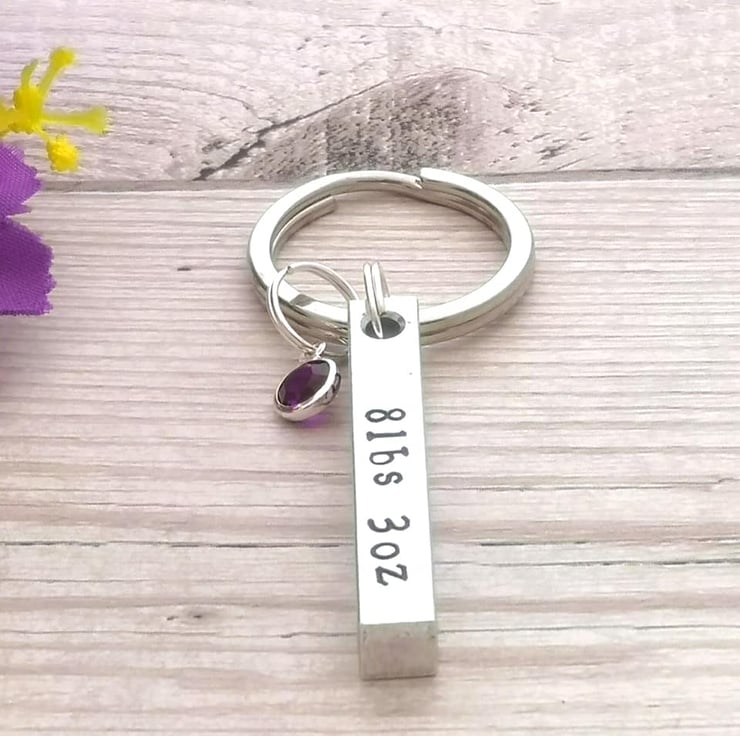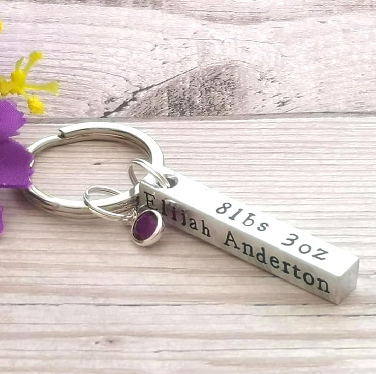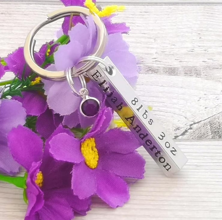 This keepsake keyring can be personalised with baby’s name, date and time of birth and weight, as well as a colourful birthstone crystal. They make a perfect gift for a new Mummy or Daddy.