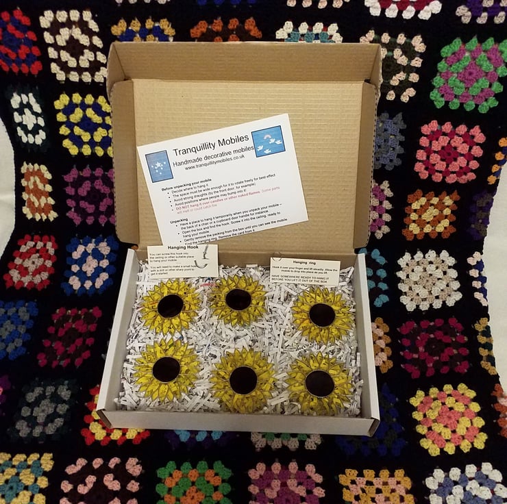 The sunflowers are approximately 9cm diameter