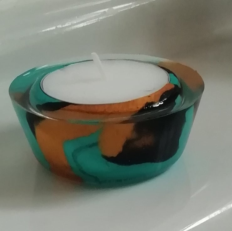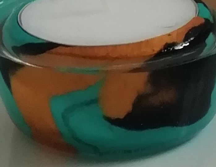 Marble clay glass candles by Blooming clay gifts are unusual pieces of art made with coloured clay blended together to make a marble effect then each one is encased in glass for a glossed finish, each item is handmade and uniquely designed.