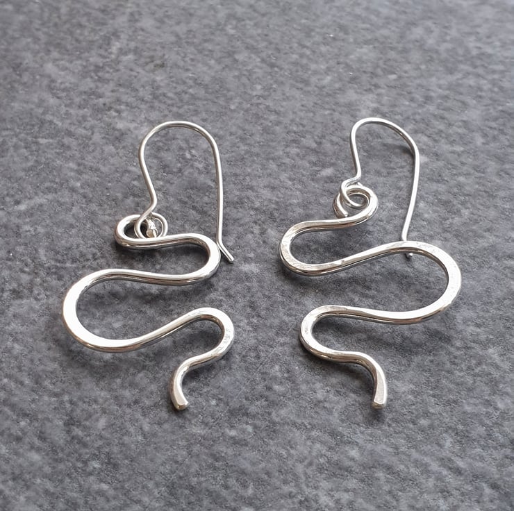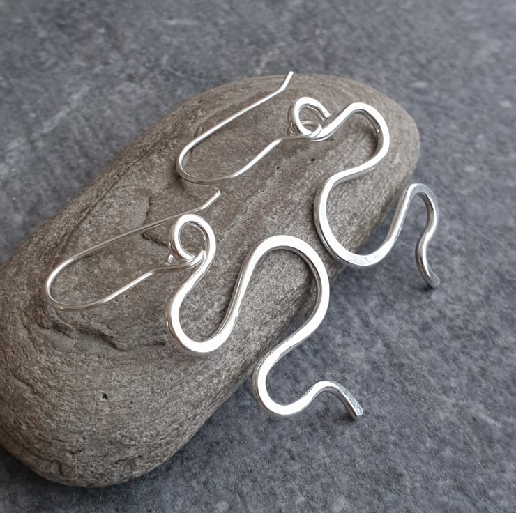 They've been made from heavy gauge silver wire, twisted and formed into undulating waves, then forged flat on a steel block for extra detail and strength.