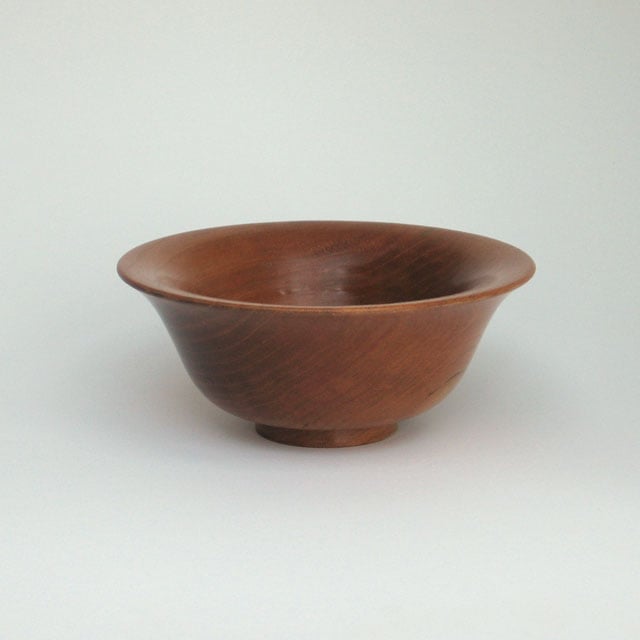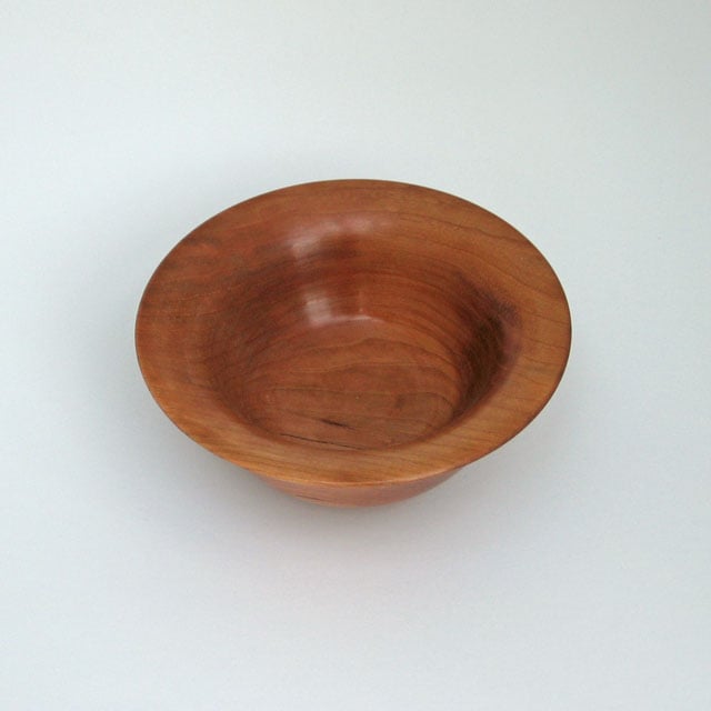 A small dish turned in cherry with a dulled melamine finish and waxed. Ideal for goodies of all kinds at holiday times.