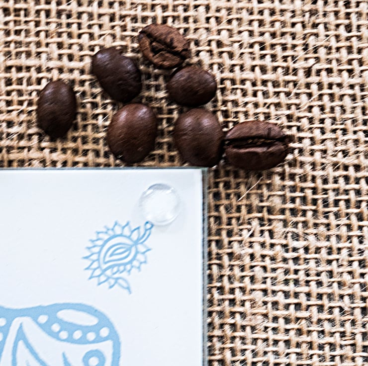 The coaster measures 9cm square and has small bumpers on each corner of the underside to protect surfaces and prevent the coaster from slipping. The coasters can be wiped clean with a damp cloth but it is not recommended to put them in a dishwasher.