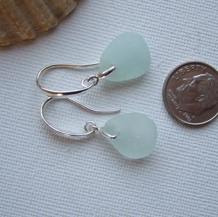 OCEAN WAVES... Romantic sterling silver earrings with top drilled sea foam Scottish sea glass in water drop shape on ornate bail that reminds me of Ocean waves. Sea glass is either triangle or drop shape in shades of sea foam.