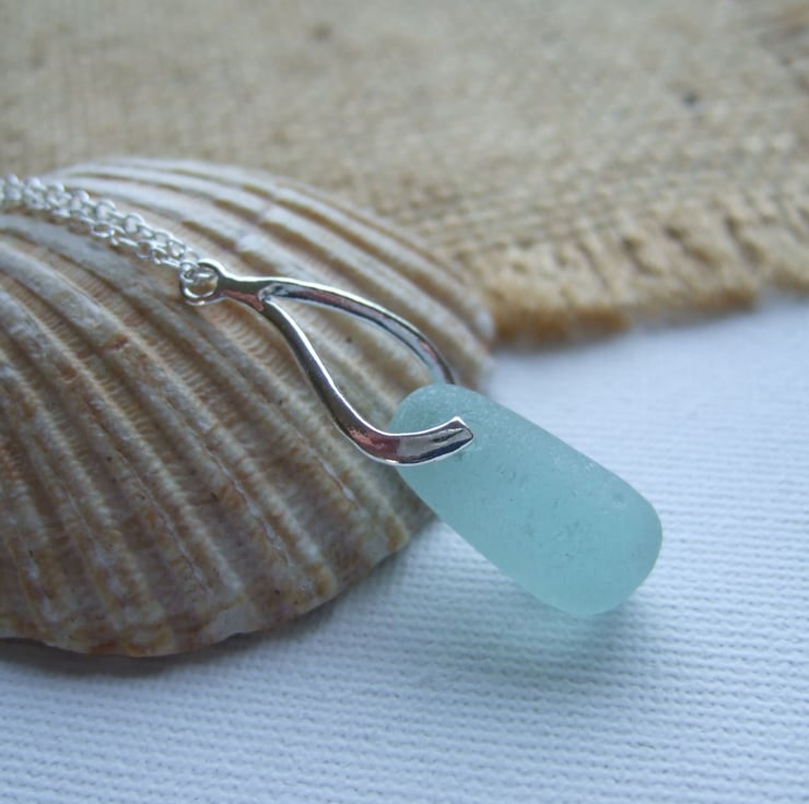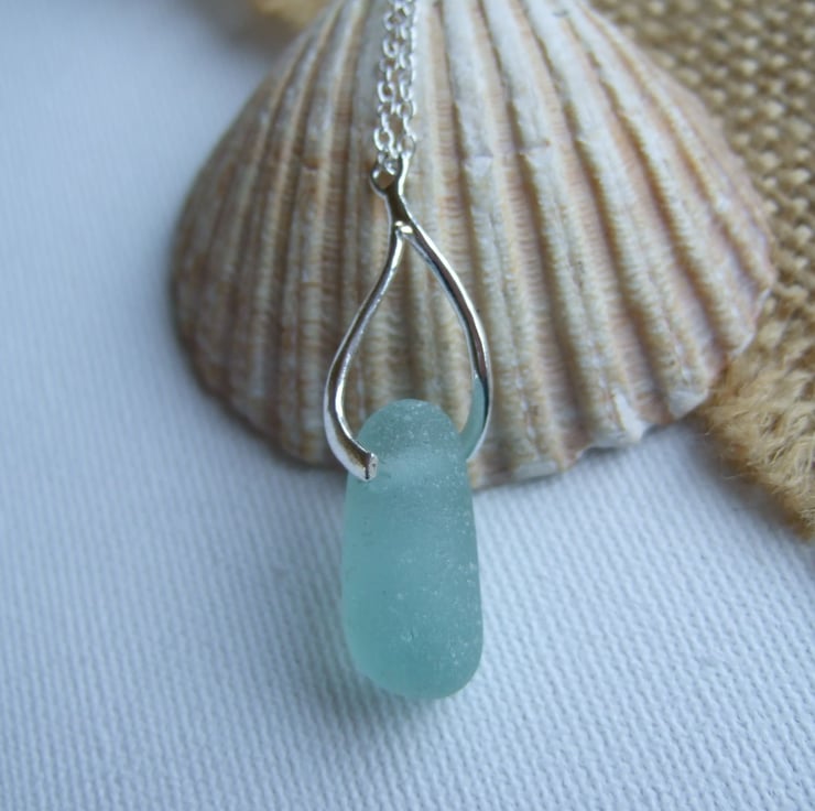 3cm long incl bail ( sea glass is 2cm) - top drilled on sterling silver bail and 18" sterling silver necklace.