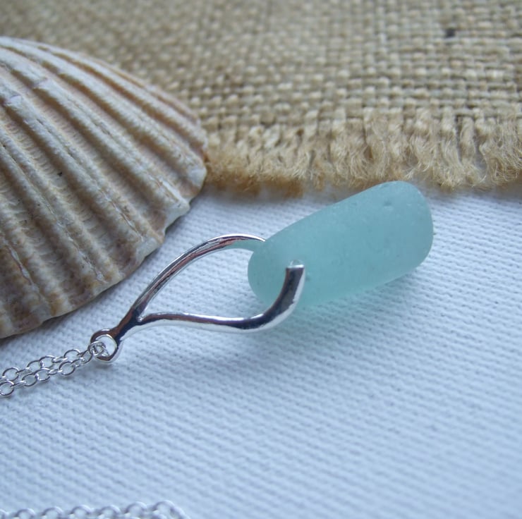 Infinity necklace...Petite sea glass bottle stopper stem necklace held by a sterling silver infinity bail with lovely tumble marks from the strong currents of the North Sea in SeahamEngland.