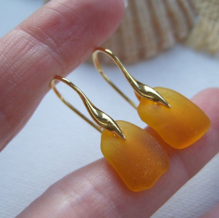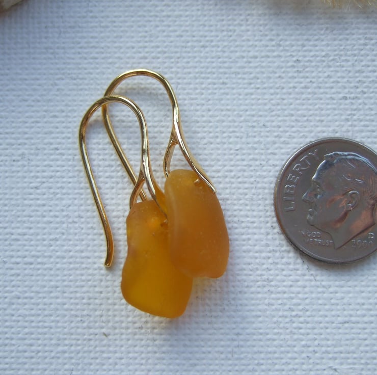 24K gold plate on sterling silver wave or Mermaid tail earrings capture two amazing pieces of warm yellow sea glass.