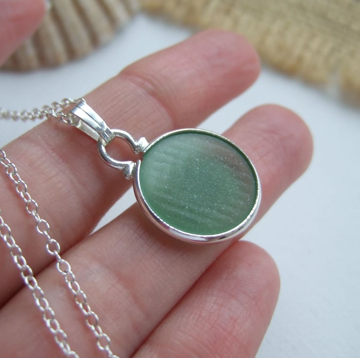 Ohajiki is approx 16mm diameter, set in a silver plated bezel band and comes with an 18" sterling silver chain.